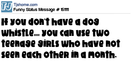 - # 203136 If you don't own a dog whistle then you can always use two teenage girls who haven't seen each other in a month.