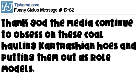 X says Thank god the media continue to obsess on these coal hauling Kartrashian hoes and putting them out as role models.