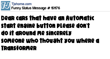 X says Dear cars that have an Automatic start engine button please don't do it around me sincerely someone who thought you where a Transformer