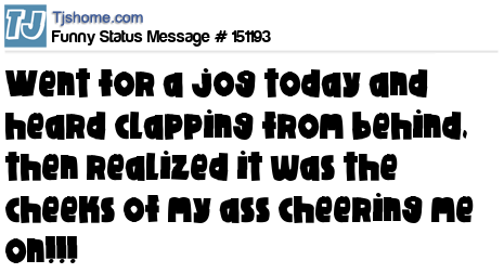 X Went for a jog today and heard clapping from behind, then realized it was the cheeks of my ass cheering me on!!!