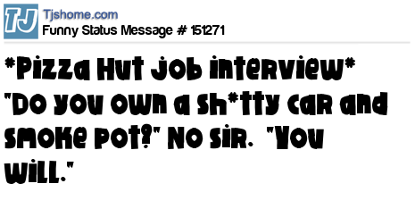 - # 158697 Pizza Hut job interview* "Do you own a car and smoke pot?" No sir. "You will."