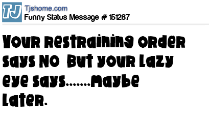 X says Your restraining order says NO But your lazy eye says.......maybe later.