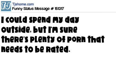 X says I could spend my day outside, but I'm sure there's plenty of p0rn that needs to be rated.