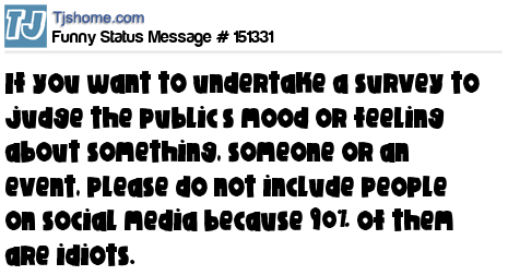 X says If you want to undertake a survey to judge the public’s mood or feeling about something, someone or an event, please do not include people on social media because 90% of them are idiots.