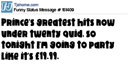 X Prince's greatest hits now under twenty quid, so tonight I'm going to party like it's £19.99.