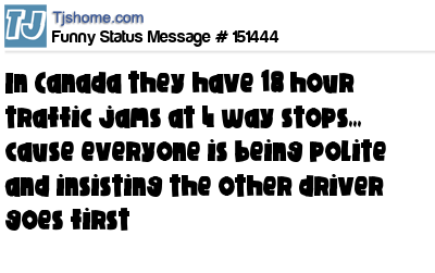 X In Canada they have 18 hour traffic jams at 4 way stops,,, cause everyone is being polite and insisting the other driver goes first
