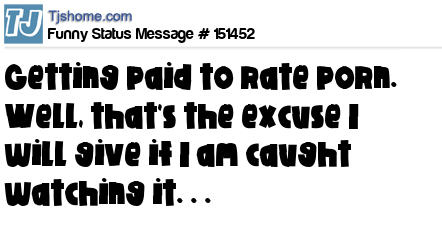 X says Getting paid to rate porn. Well, that's the excuse I will give if I am caught watching it. . .