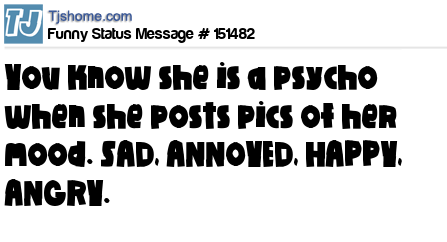X says You know she is a psycho when she posts pics of her mood. SAD, ANNOYED, HAPPY, ANGRY.