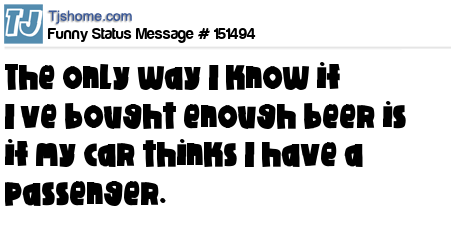 - # 143029 The only way I know if I've bought enough beer is if my car thinks I have a passenger