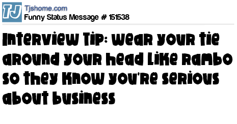 X says Interview Tip: wear your tie around your head like rambo so they know you're serious about business