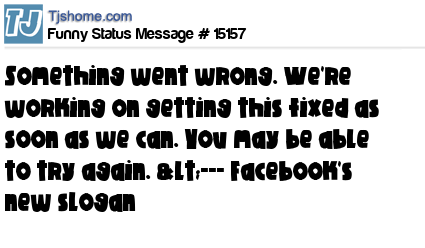 X  Something went wrong. We're working on getting this fixed as soon as we can. You may be able to try again. <--- Facebook's new slogan