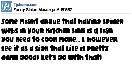 X Some might argue that having spider webs in your kitchen sink is a sign you need to cook more... I, however, see it as a sign that life is pretty damn good! (Let's go with that)