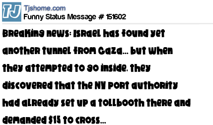 X Breaking news: Israel has found yet another tunnel from Gaza... but when they attempted to go inside, they discovered that the NY port authority had already set up a tollbooth there and demanded $15 to cross...