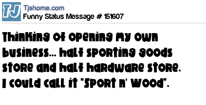 X is thinking of opening my own business... half sporting goods store and half hardware store. I could call it "Sport n' Wood".