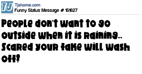 X says People don't want to go outside when it is raining.. Scared your fake will wash off?