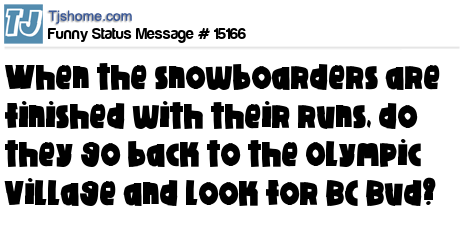 X when the snowboarders are finished with their runs, do they go back to the Olympic Village and look for BC Bud?