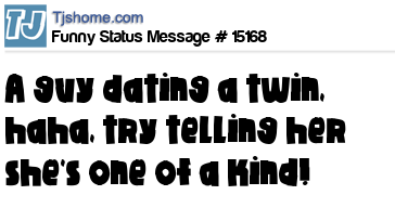 X says a guy dating a twin, haha, try telling her she's one of a kind!