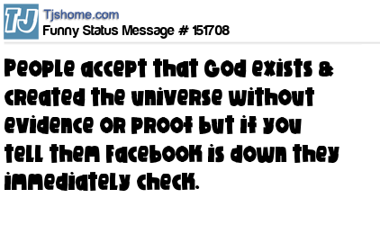X People accept that God exists & created the universe without evidence or proof but if you tell them Facebook is down they immediately check.