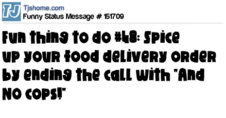 X says Fun thing to do #48: Spice up your food delivery order by ending the call with "And NO cops!"