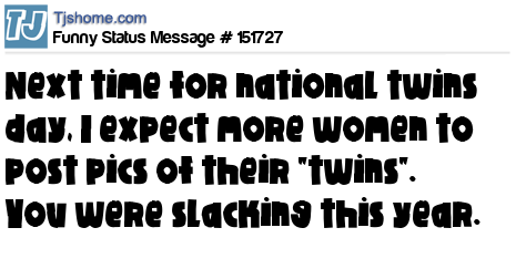 X Next time for national twins day, I expect more women to post pics of their "twins". You were slacking this year.
