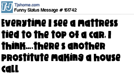 - # 48912 … Everytime I see a mattress on top of a car I think it's a prostitute making house calls …