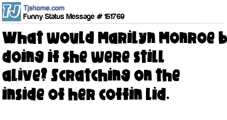 X says What would Marilyn Monroe be doing if she were still alive? Scratching on the inside of her coffin lid.