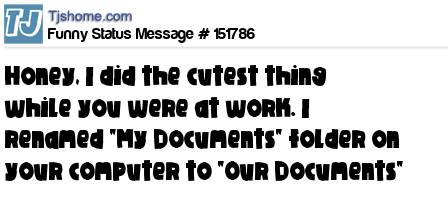 X says Honey, I did the cutest thing while you were at work. I renamed "My Documents" folder on your computer to "Our Documents"