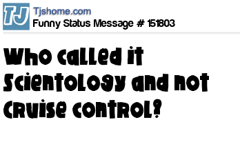 - # 117751 The problem joining Scientology is that you just know they'll give Tom Cruise the best spaceship.