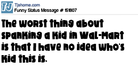 X says The worst thing about spanking a kid in Wal-Mart is that I have no idea who's kid this is.