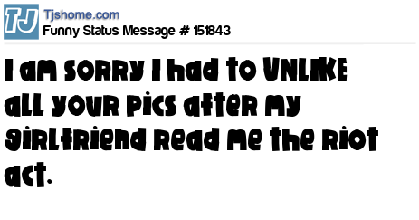X says I am sorry I had to UNLIKE all your pics after my girlfriend read me the riot act.