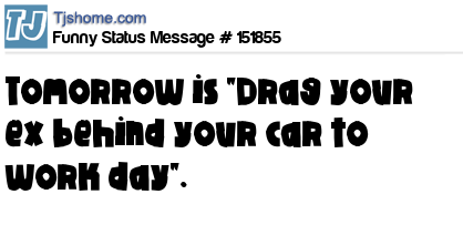 X says Tomorrow is "Drag your ex behind your car to work day".