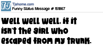 X says Well well well, if it isn't the girl who escaped from my trunk.