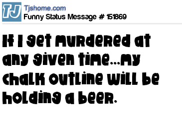 X says If I get murdered at any given time...my chalk outline will be holding a beer.