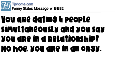 - # 153698 You dating 3 people and you say you are in a relationship!!! Lol nah you are in a group activity.