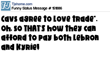X Cavs agree to Love trade". Oh, so THAT'S how they can afford to pay both Lebron and Kyrie!