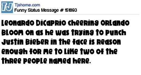 - # 151667 Leonardo DiCaprio cheering on Orlando Bloom as he tried to punch Justin Bieber is enough for him to earn his Oscar in my books.