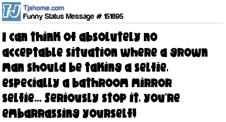 X says I can think of absolutely no acceptable situation where a grown man should be taking a selfie, especially a bathroom mirror selfie... Seriously stop it, you're embarrassing yourself!