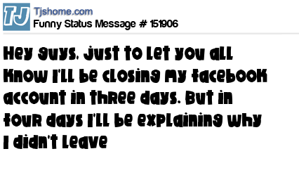 - # 114735 Hey guys, just to let you all know I'll be closing my facebook account in three days... But in four days I'll be explaining why I didn't leave