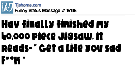 X Hav finally finished my 40,000 piece Jigsaw, it reads- " Get a life you sad F**k "