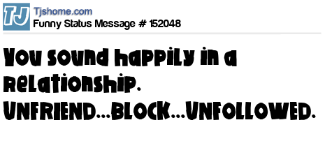 X says You sound happily in a relationship. UNFRIEND...BLOCK...UNFOLLOWED.