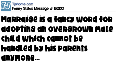 X says Marraige is a fancy word for adopting an overgrown male child which cannot be handled by his parents anymore...