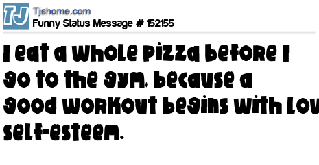X says I eat a whole pizza before I go to the gym, because a good workout begins with low self-esteem.