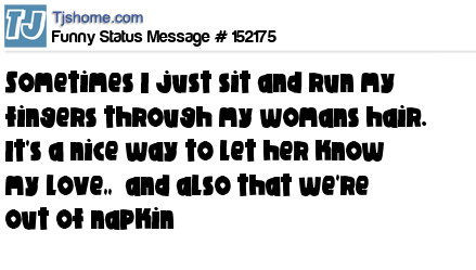 - # 142883 I love running my fingers through my girlfriend's hair. It's also a great way to let her know we're out of napkins.