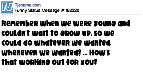 - # 16189 Remember when we were young and couldn't wait to grow up so we could do whatever we wanted, whenever we wanted... How's that working' out?