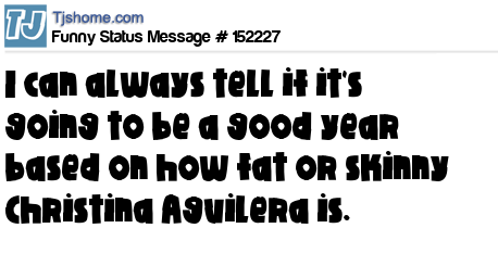 X says I can always tell if it's going to be a good year based on how fat or skinny Christina Aguilera is.