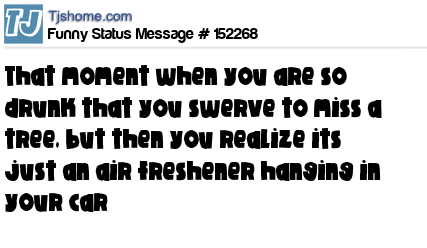 - # 96198 That moment when you are so drunk that you swerve to miss a tree but then you realize its just an air freshener hanging in your car.