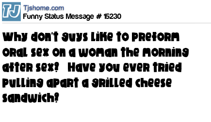 X is Why don't guys like to preform oral sex on a woman the morning after sex? Have you ever tried pulling apart a grilled cheese sandwich?
