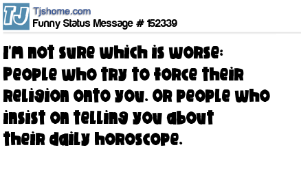 X says I'm not sure which is worse: People who try to force their religion onto you. Or people who insist on telling you about their daily horoscope.