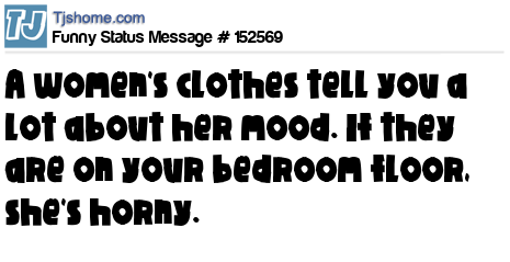 X says A women's clothes tell you a lot about her mood. If they are on your bedroom floor, she's horny.