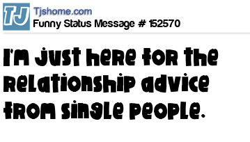 - # 64704 Sorry, but I don't take relationship advice from single people. That's like taking advice on how to jump hurdles from a dude with no legs.